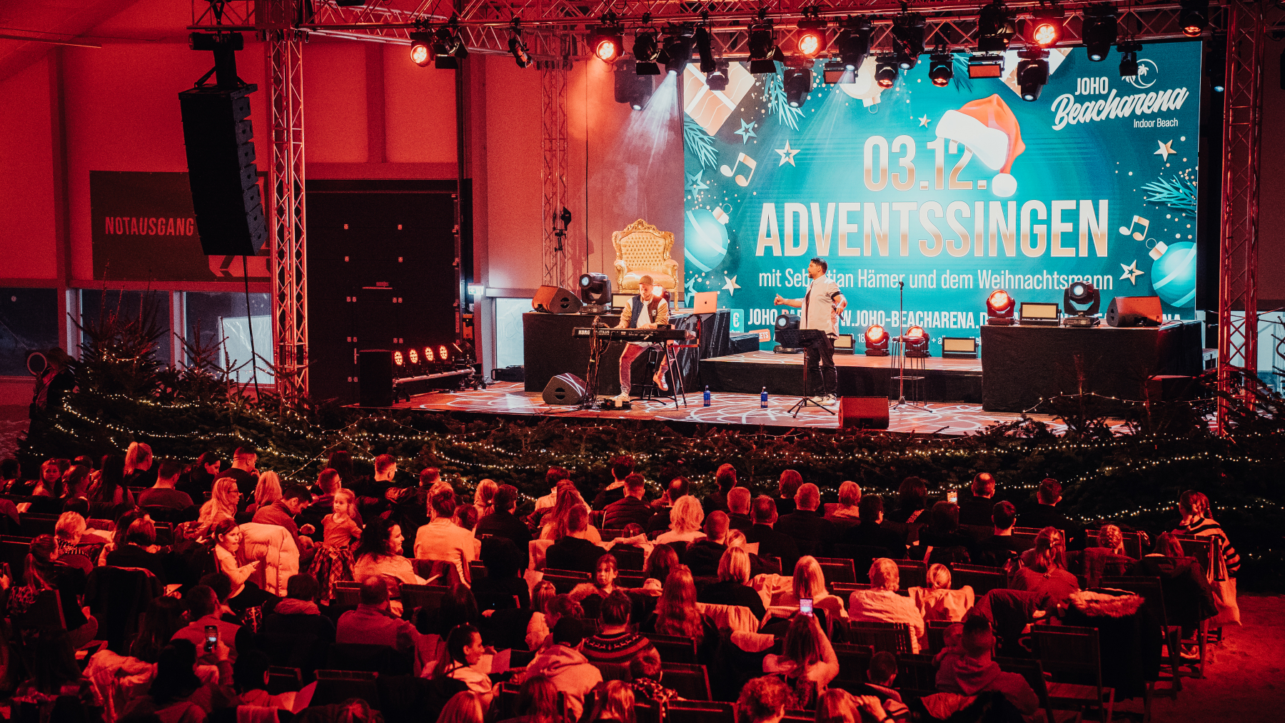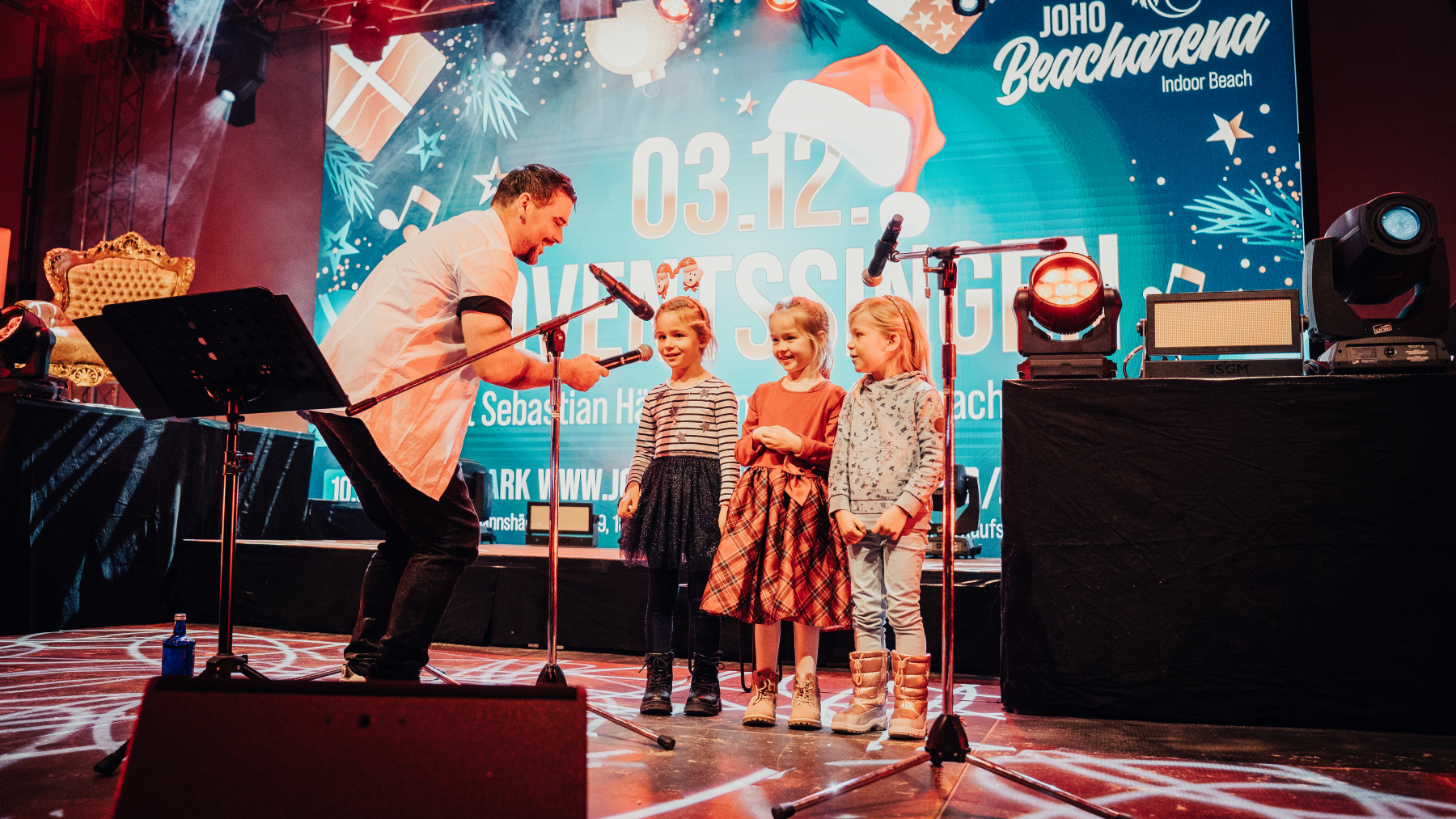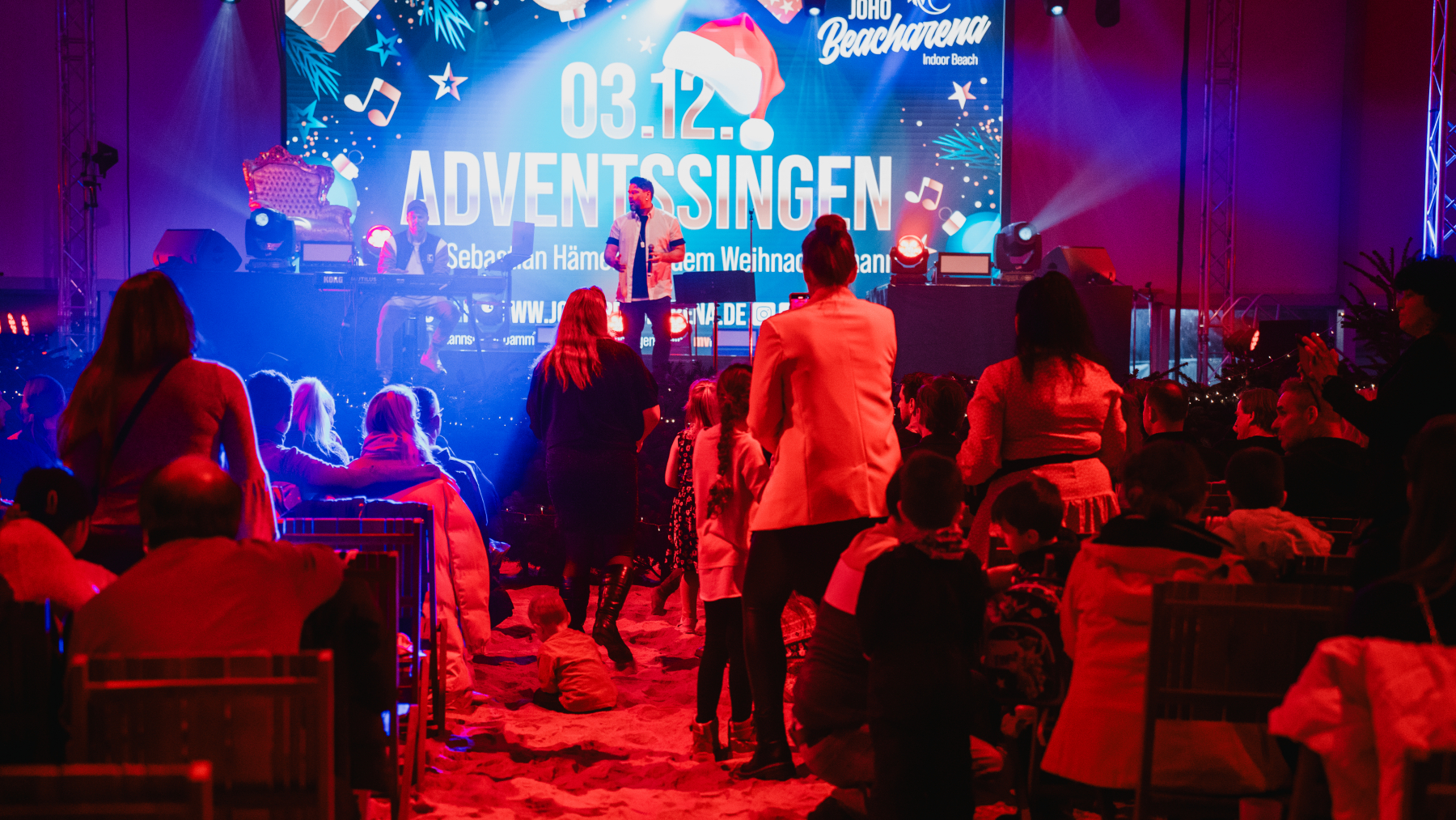Am 03.12. fand das diesjährige Weihnachtssingen in der JoHo Beacharena zum zweitenmal statt. Wie auch im letzten Jaht fanden sich zahlreiche Familien mit ihren Kindern ein um an dem Abend mit Sebastian Hämer und dem Weihnachtsmann den Abend gemeinsam zu verbringen und Weihnachtslieder zu singen.